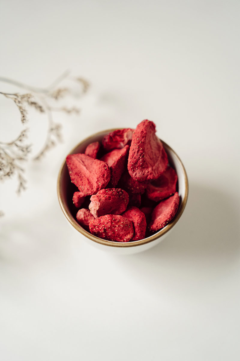 Owoce liofilizowane to produkt, który zachowuje swój kolor, smak oraz większość witamin i mikroelementów. Są wspaniałym dodatkiem do deserów, ciast, a także doskonałą przekąską dla dzieci i dorosłych.