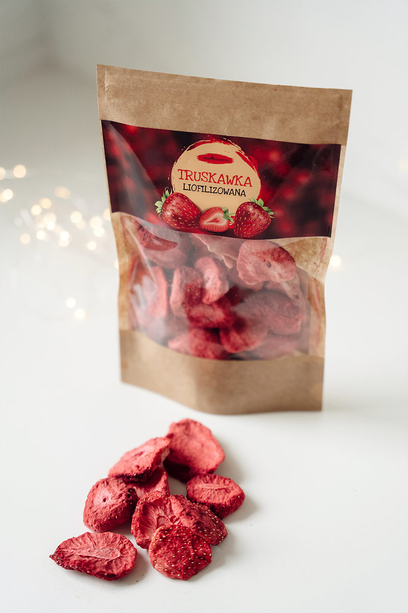 Truskawki liofilizowane – dzięki liofilizacji owoce zachowują wartości odżywcze, kształt, barwę; smak i zapach są bardziej wyraźne. Liofilizowane truskawki zawierają 100% owoców truskawki i żadnych dodatków. Są doskonałym źródłem witaminy C, A, E oraz witamin z grupy B. Dodatkowo posiadają niski indeks glikemiczny, poprawiają mikrokrążenie oraz usuwają nadmiar wody z organizmu.